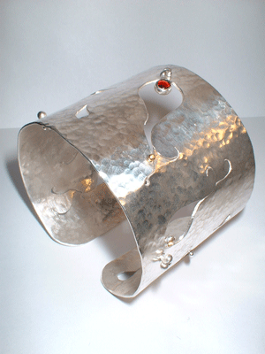 Handcrafted with Sterling Silver and 24k gold detail, this Jalisco cuff is set with garnet, Topaz and Citrine gemstones. Metalwork using negative space of leaves and vines let your skin peek through this sexy piece. Tiny detailing of Sterling Silver and 24k gold berries are scattered through out. Indulge yourself if you dare!