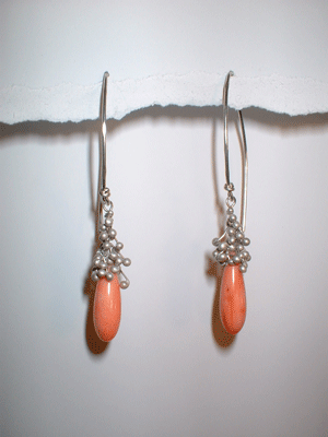These eye-catching Coral earrings are sleek & sexy. Length is 2 1/4 inches long.
