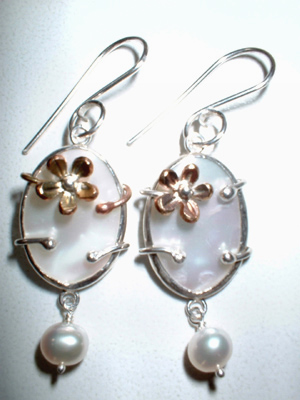 These one of a kind earrings are handcrafted with Sterling Silver and 14k Gold-filled alloysl. Daisies & vines embrace the 18 x 13 mm Cabochons, while the earrings dance around with every move you make. These earrings are approximately 45 mm long. You select the gemstones: