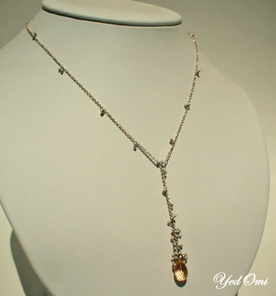 This necklace has teeny tiny Sterling Silver rounds made individually called caviar metalwork. Each faceted Briolette is crowned with this intricate metalwork. The long Sterling drop in the front is super sexy! Necklace measures 16" and front drop is almost 3 inches long.